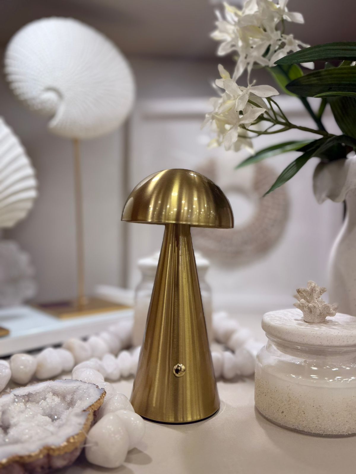 Luminária em metal dourado com acabamento acetinado, que reflete a luz com sofisticação e charme. Seu design em formato cônico com cúpula arredondada remete ao estilo contemporâneo, tornando-a uma peça versátil para diferentes propostas decorativas. Ideal para uso em mesas laterais, criados-mudos ou aparadores, proporciona iluminação aconchegante e cria um ponto de destaque no ambiente. Combina perfeitamente com salas de estar, quartos e escritórios, valorizando a decoração com um toque de modernidade e requinte.