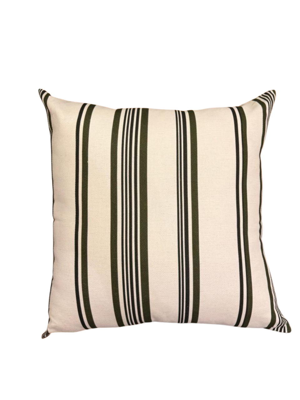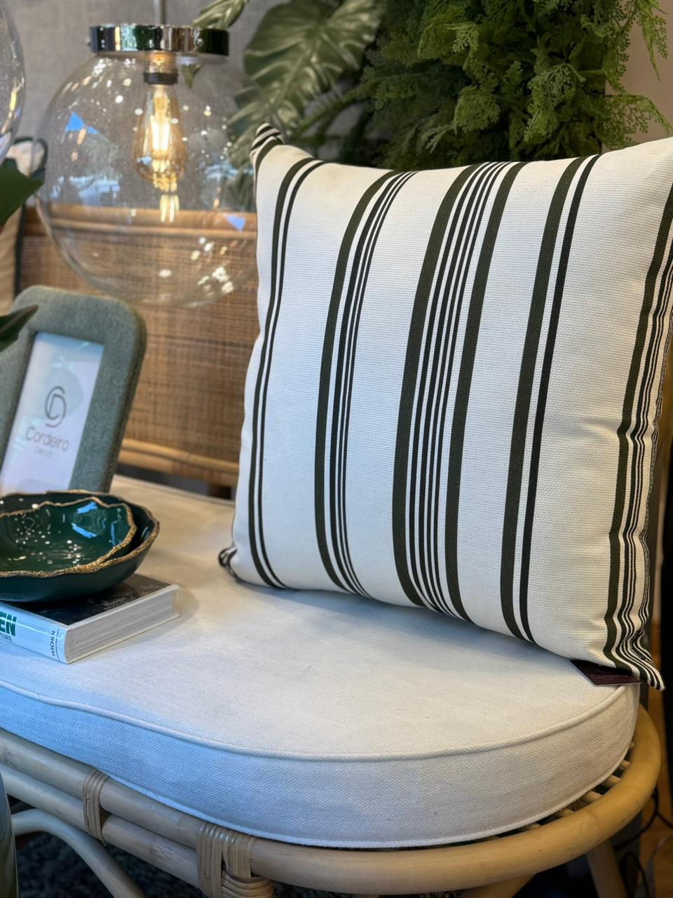 Almofada acqua com listras musgo, que combina elegância atemporal com praticidade no dia a dia. O tecido especial é resistente à água e de fácil limpeza, ideal para quem busca beleza sem abrir mão da funcionalidade. As listras em verde musgo sobre fundo claro criam um contraste sofisticado que harmoniza com diferentes estilos de decoração.