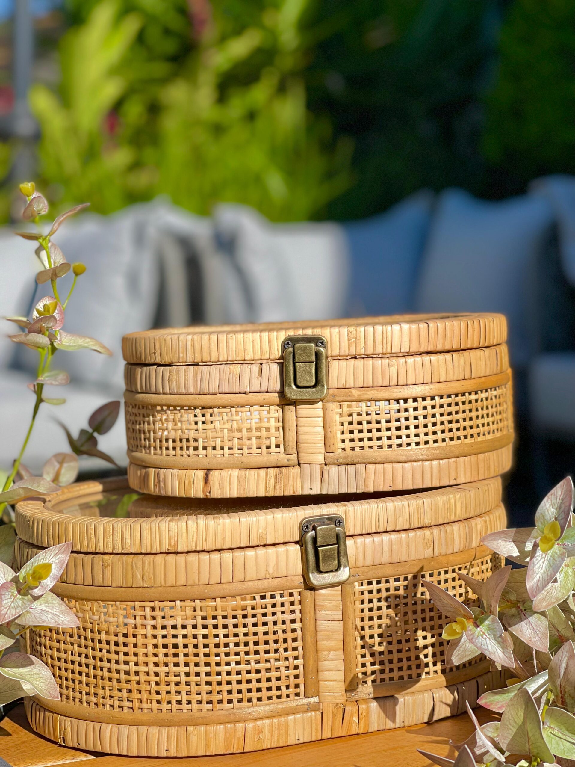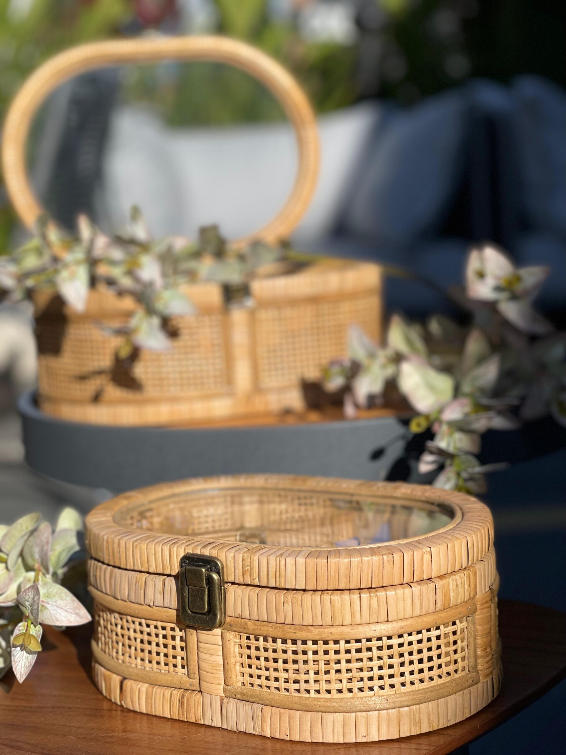 Uma peça que carrega a essência do natural com um toque de sofisticação. Esta caixa decorativa oval combina o calor da madeira com o trançado artesanal do rattan e o acabamento leve do tampo em vidro transparente. O formato oval suaviza o visual e reforça o estilo delicado e fluido, ideal para compor espaços com elegância e autenticidade.