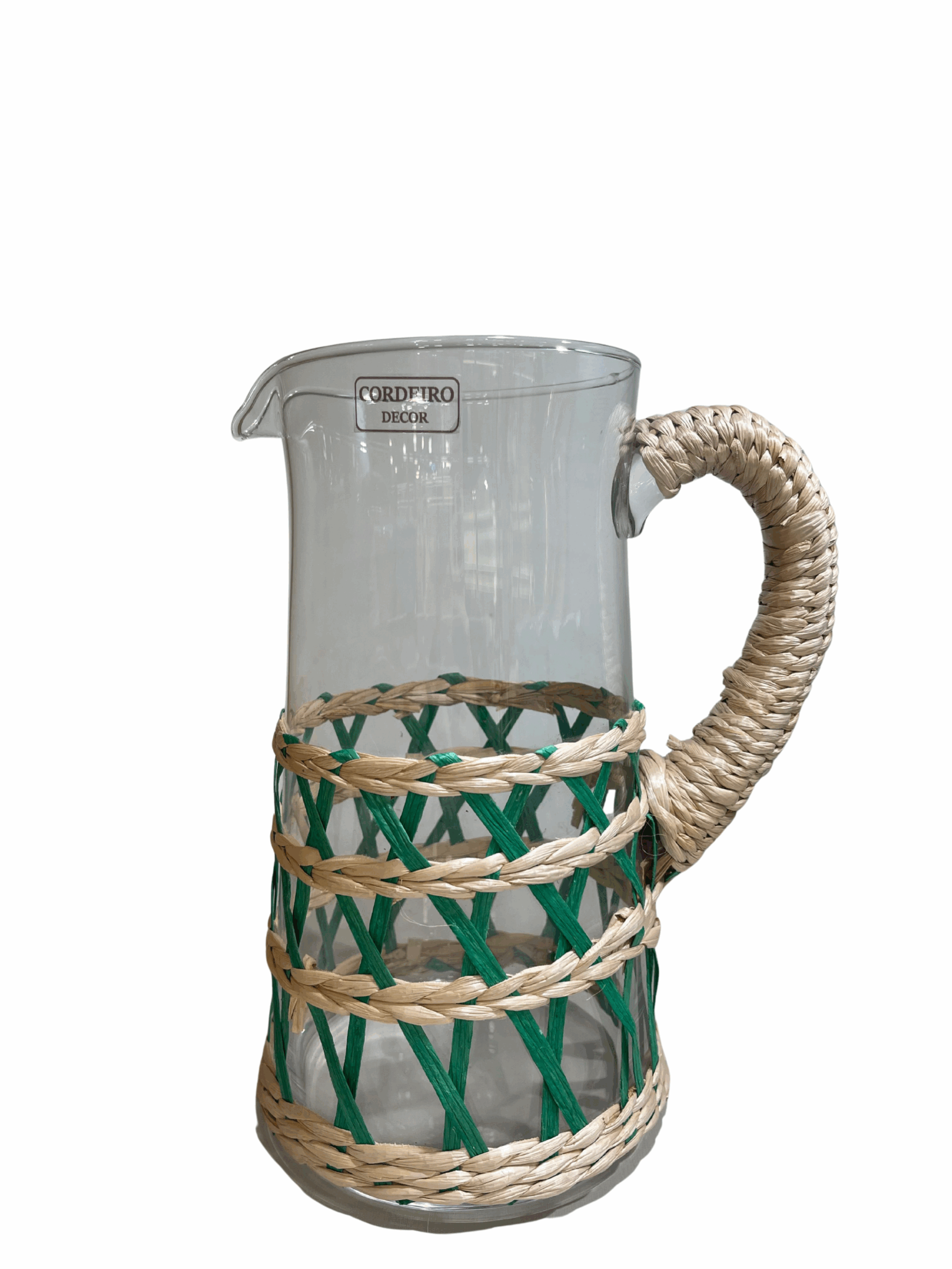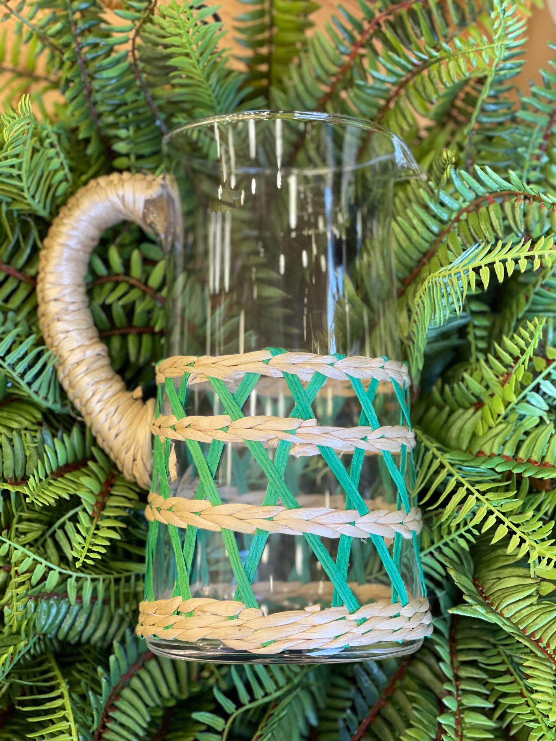 Essa jarra em vidro com detalhe trançado é o equilíbrio perfeito entre simplicidade e charme artesanal. Com alça envolvida em fibra natural e base adornada com palha trançada em tons neutros e verdes, ela traz frescor e autenticidade à mesa. Ideal para servir sucos, águas saborizadas ou compor um arranjo floral delicado, é uma peça versátil que se encaixa em diversos estilos de decoração. Ótima opção para ambientes com clima tropical, varandas e casas que valorizam elementos naturais e afetivos no dia a dia. Um detalhe que transforma o servir em um gesto cheio de estilo.