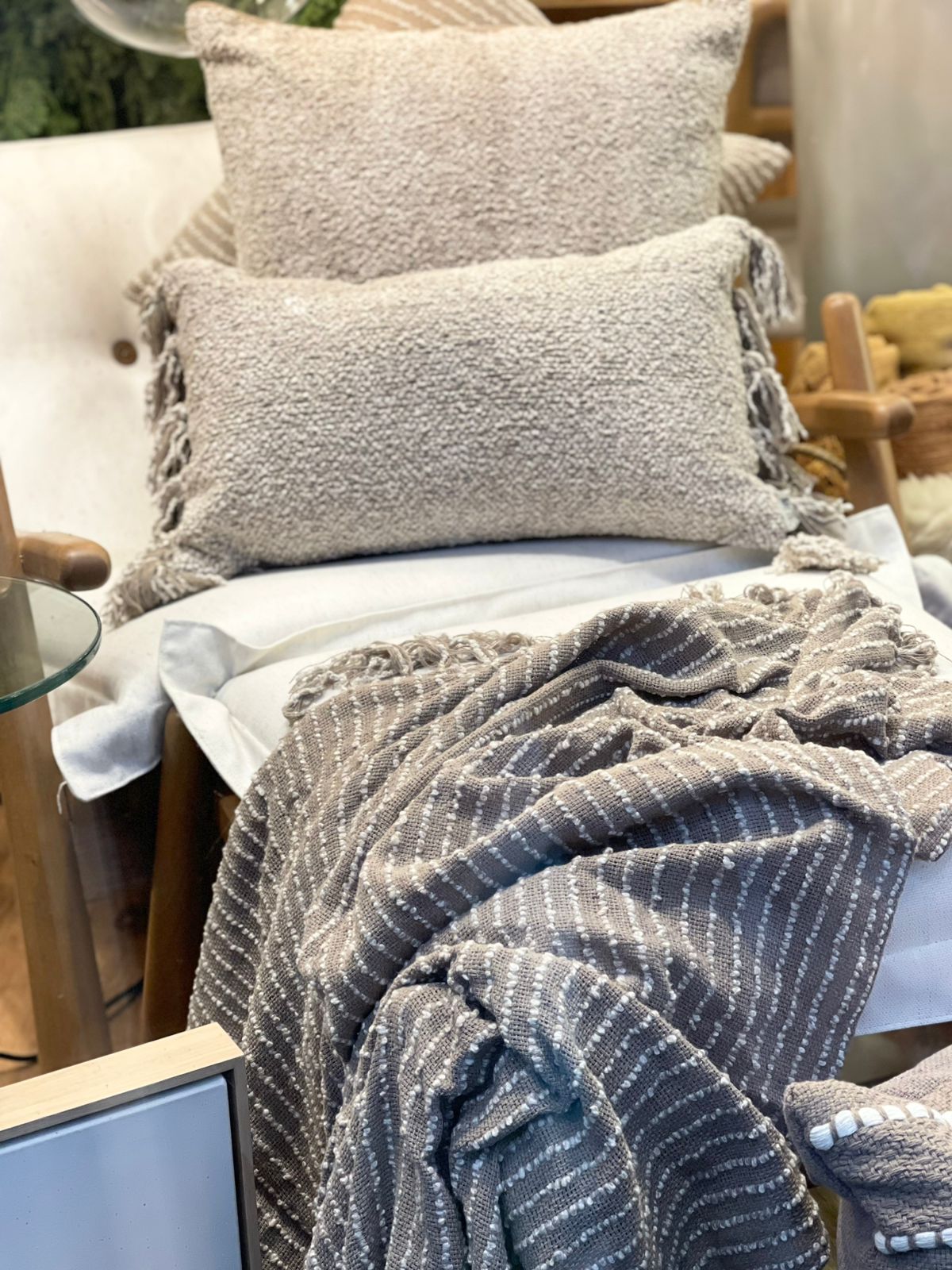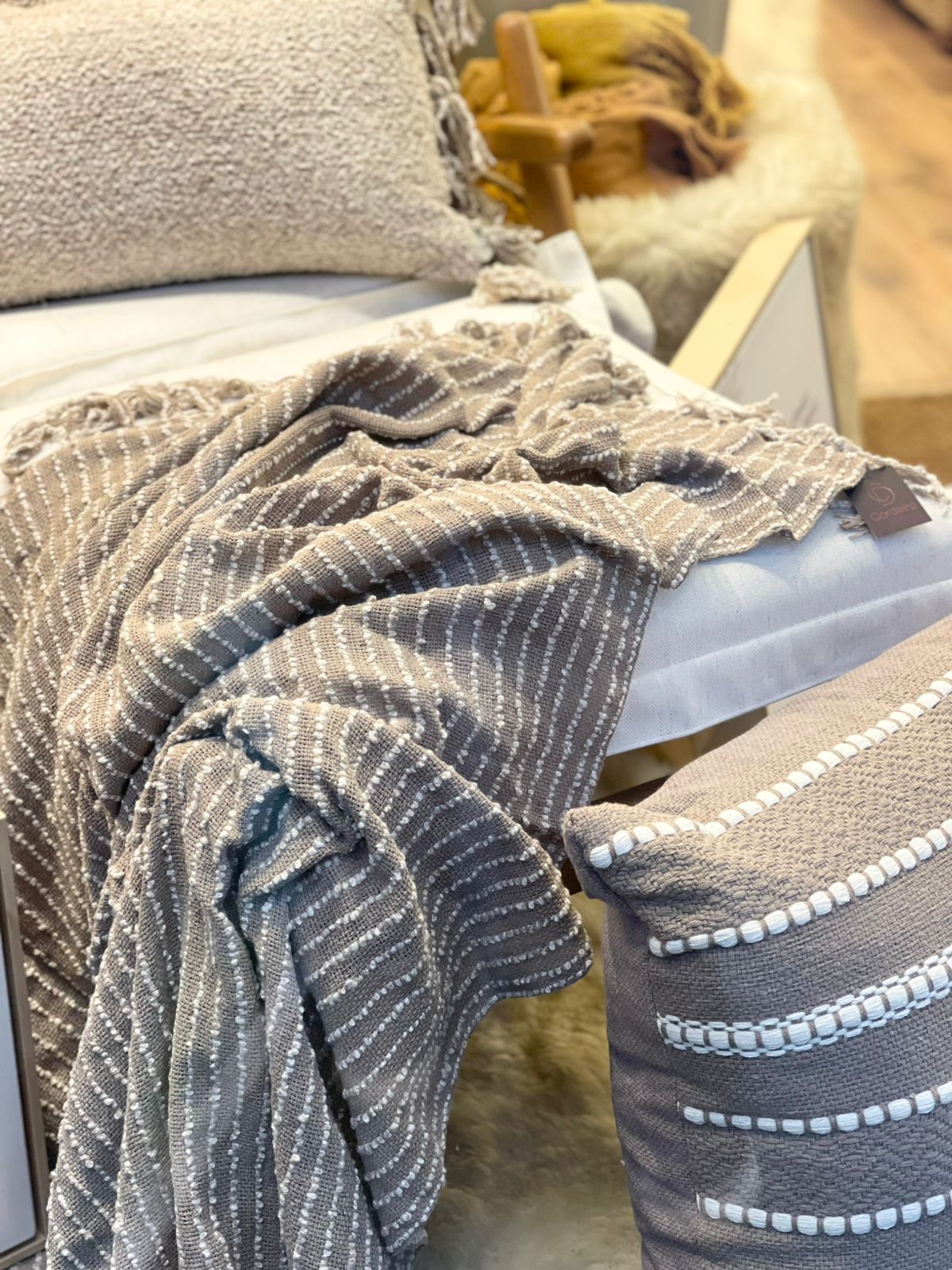 A Manta Alasca Capuccino une charme visual e toque envolvente em uma peça que transmite puro aconchego. Com um padrão de listras delicadas em relevo e um tom neutro sofisticado, ela é perfeita para compor espaços que pedem conforto e harmonia. O acabamento com pequenas franjas reforça seu visual despojado e acolhedor, ideal para dias frios ou para criar composições elegantes no sofá, poltrona ou cama.