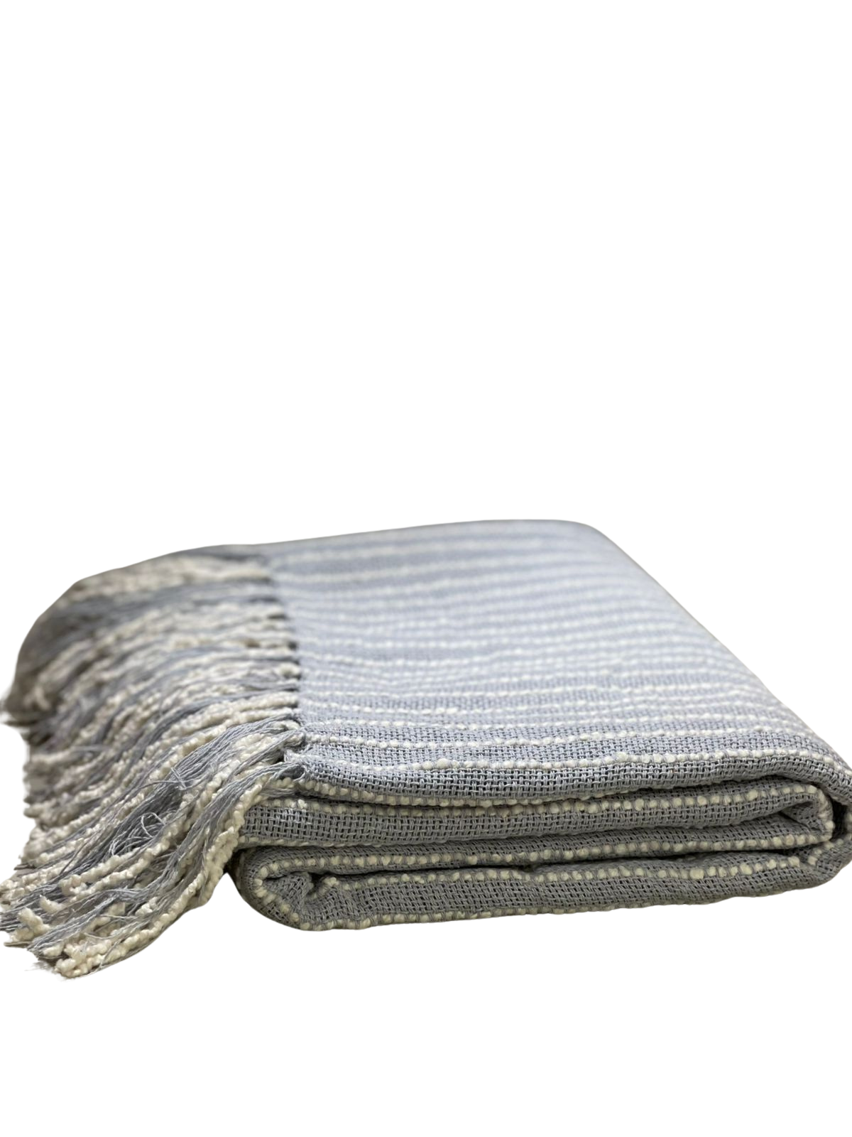 A Manta Alasca na cor cinza tempestade combina elegância e suavidade em um visual moderno. Seu padrão listrado em relevo, com detalhes off-white, cria uma textura visual sofisticada que se encaixa perfeitamente em decorações contemporâneas ou escandinavas.
