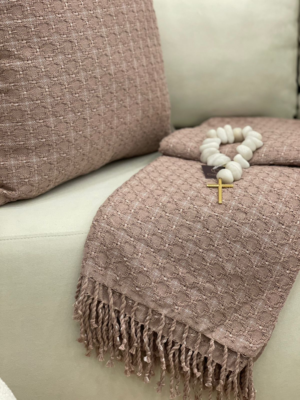Ideal para sofás, camas e poltronas; também funciona como peça decorativa dobrada ou disposta sobre móveis.