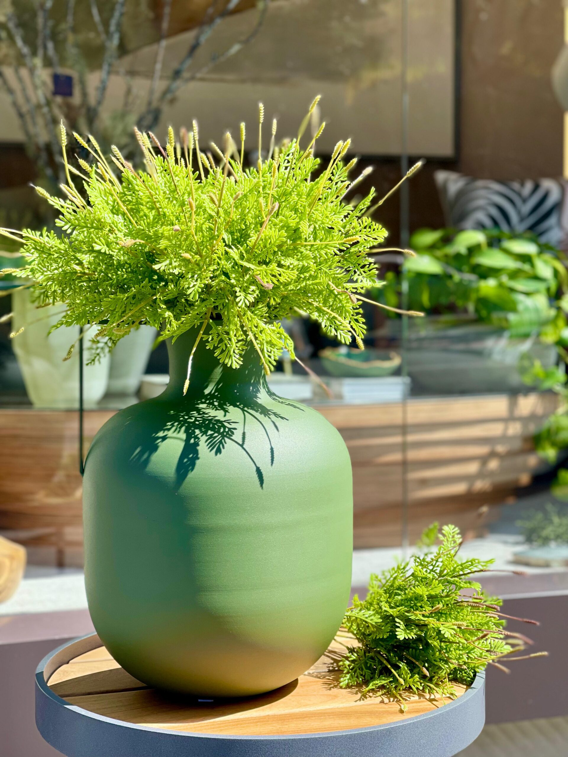 Com acabamento fosco e design orgânico, este vaso metálico verde une modernidade e autenticidade em uma só peça. A alça lateral adiciona personalidade e leveza à composição, destacando-se como um detalhe elegante e funcional. Ideal para ser usado sozinho ou com arranjos secos, ele valoriza qualquer ambiente com seu visual imponente e contemporâneo, trazendo um toque de cor e sofisticação na medida certa.